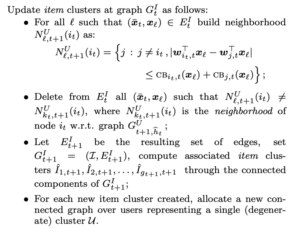 알고리즘은 k번째 라운드가 시작되었을 때, 우선 input으로 전달받은 추천 가능한 아이템 리스트 내에 존재하는 아이템 개별로 유저 클러스터(neighbor set, Nk)을 구성한다.