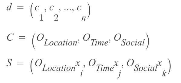 location, time, social 세 가지로 구성된 유저의 상황 정보는 Ontology로 분석되어 상호간 연산도를 계산하게 된다.